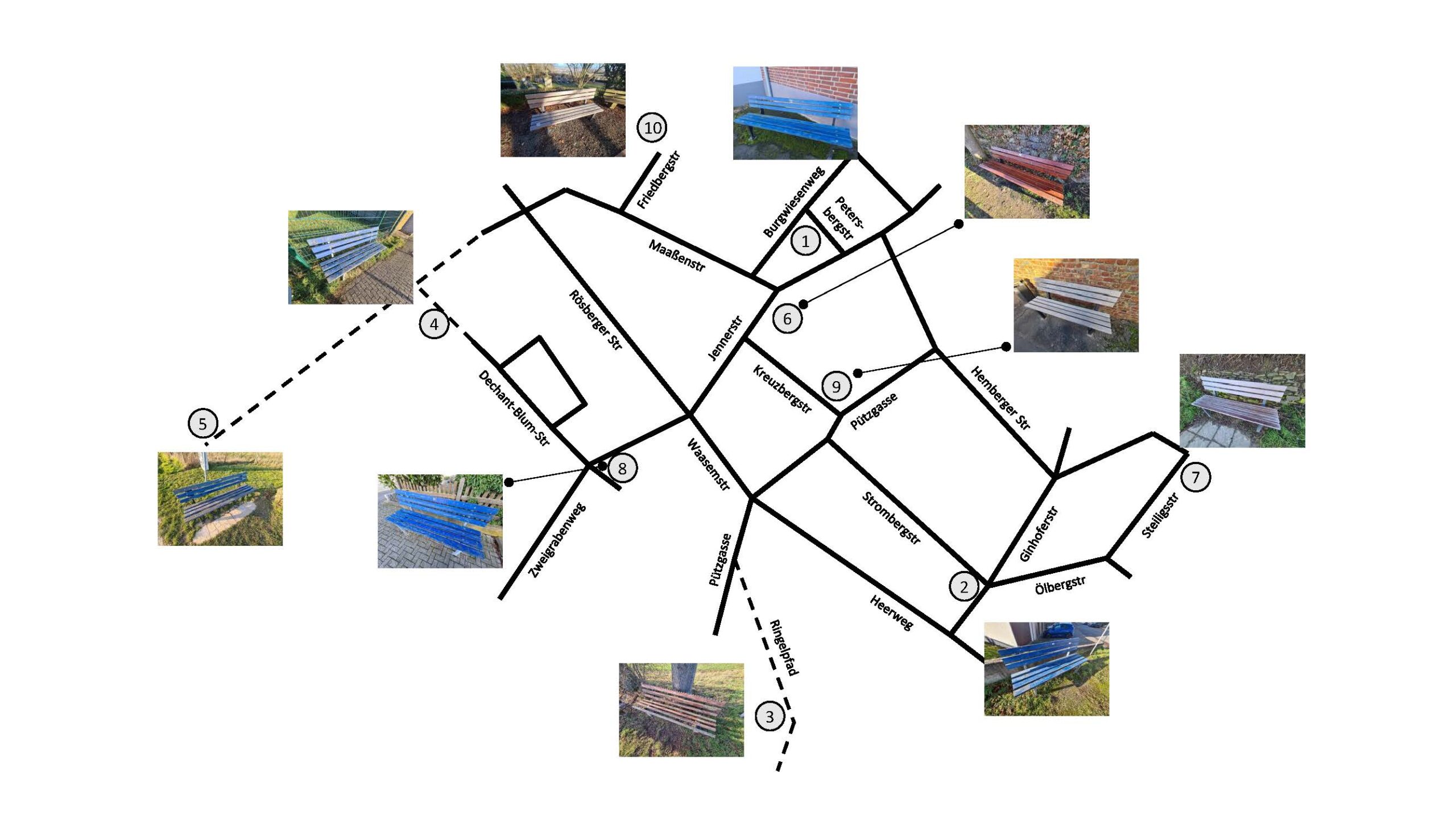 Der Förderverein hat in den letzten 10 Jahren an mehreren Standorten etwa 15 Ruhebänke installiert und führt die notwendigen Renovierungsarbeiten durch.